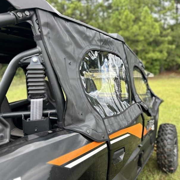 Falcon Ridge soft enclosures empower you to conquer the elements with ease. With dual zipper pulls, you can effortlessly open and close your enclosure from inside or outside your UTV. Plus, the windows and doors can be rolled up or completely removed for ultimate versatility. Enjoy the perfect blend of comfort and flexibility, with all hardware and easy-to-follow instructions included for a rapid installation. Gear up for your next adventure with Falcon Ridge, where every journey is an adrenaline rush!