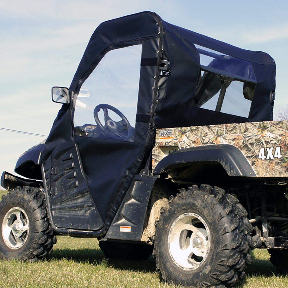 - Door windows and rear window are constructed of durable 30 mil tinted Aqua-View Vinyl