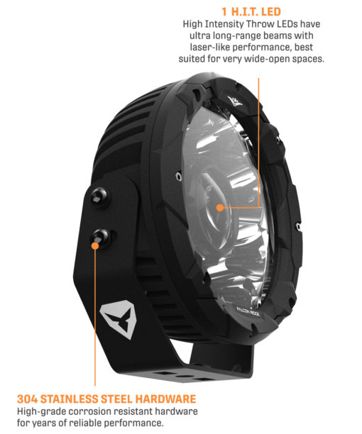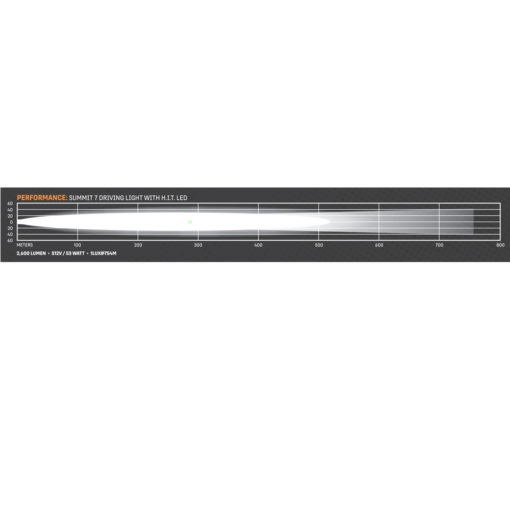 The Summit 7 HIT Driving Light is equipped with 1 HIT LED and 8 spot lights with a total output of 2,600 lumens.