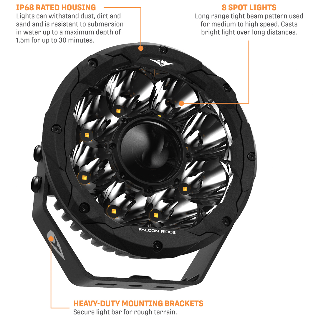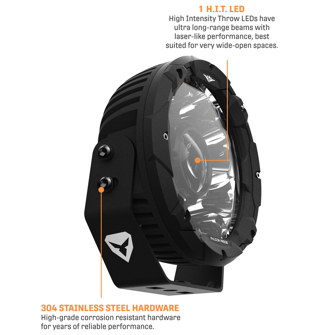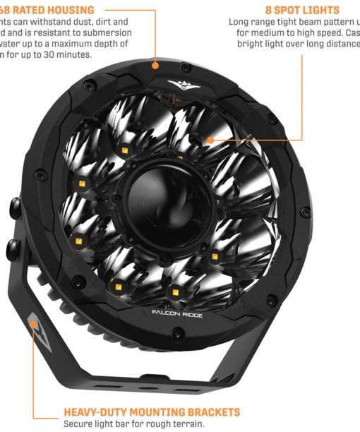 The all NEW LED Light range from Falcon Ridge is ready to break through the darkness and shine a light on new trails, fields, mud holes or wherever you are when the sun goes down. Work or play, the Falcon Ridge Summit Series has your lighting needs covered. Light up the night to get those last few fence posts installed or focus your Summit Series lights on your buddy’s UTV that’s stuck in the mud while you unspool your winch to get them out. At the end of the day, shed a little (or a lot) light on things while you set up camp. Falcon Ridge has engineered a smart range of sizes in their LED line up to meet your specific needs. The hard part is choosing just one.